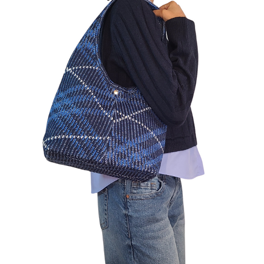Grafton Plaid Sweater Knit Bag - Classic Navy