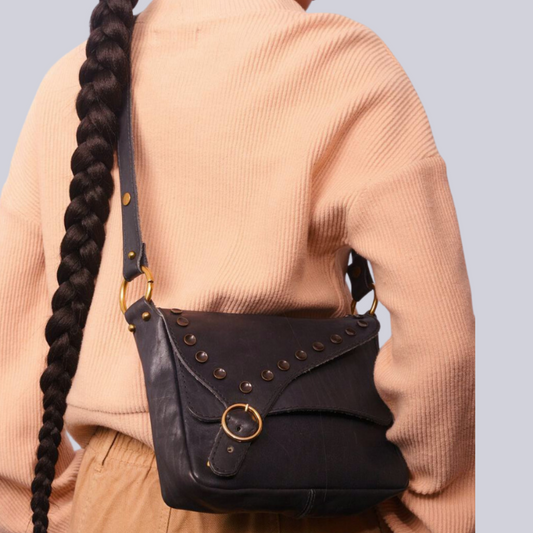 Vintage 1970s Black Leather Handbag Re-Imagined