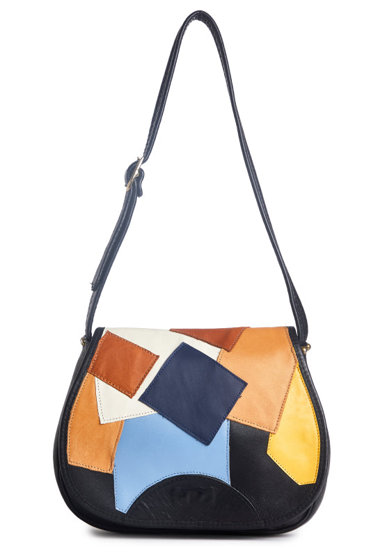 Vintage 1970s Color-Blocked Patchwork Leather Shoulder Bag Re-Imagined