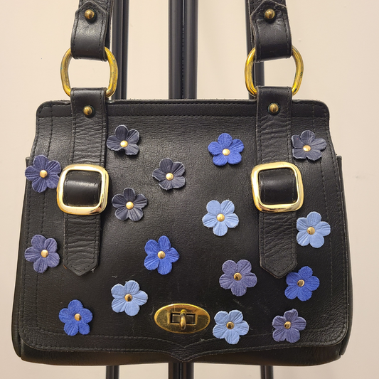 Vintage 1960s Dark Navy Leather Handbag Re-Imagined
