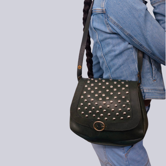 Vintage 1960s Midnight Green Leather Shoulder Bag Re-Imagined