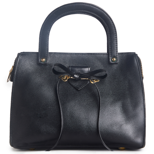 Vintage 1960s Black Leather Satchel with Bow Re-Imagined