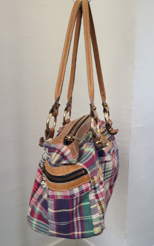Vintage 1980s Madras Patchwork Top Handle Bag