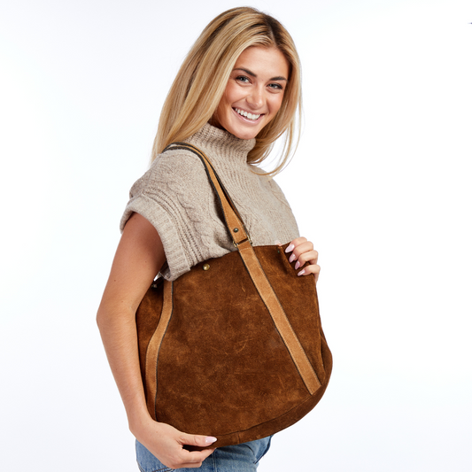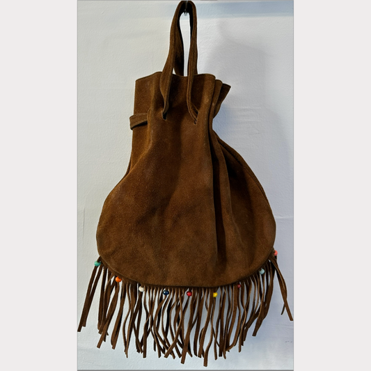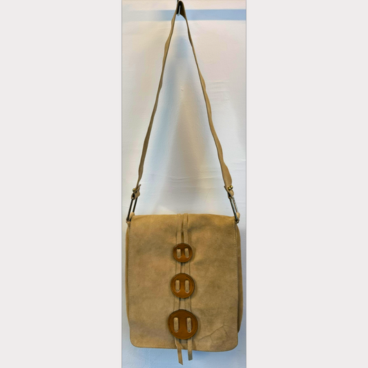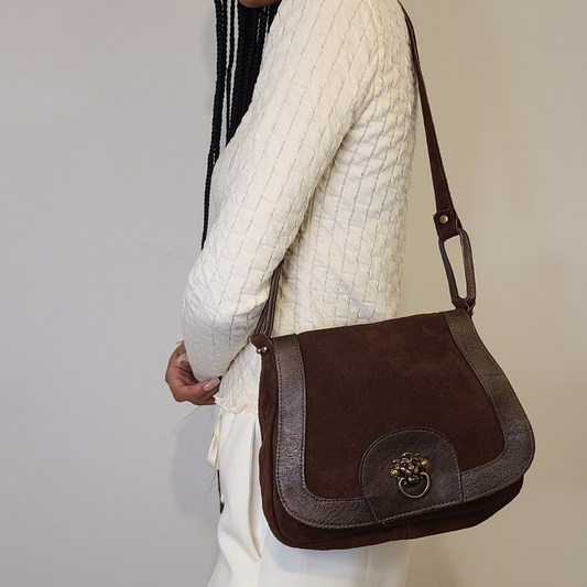 Vintage 1970s Suede Shoulder Bag with Lion Door Knocker