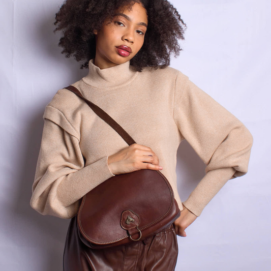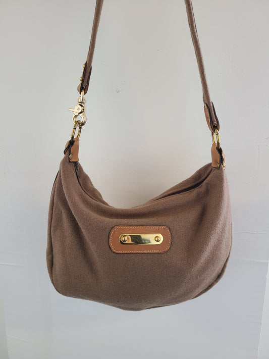 Vintage 1980s Mocha Wool Slouch Crossbody Bag