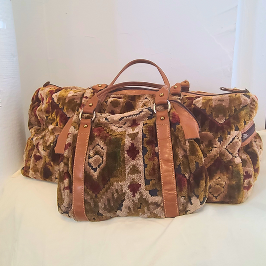 Vintage 1970s Carpet Bag Set - Overnight Bag and Top Handle