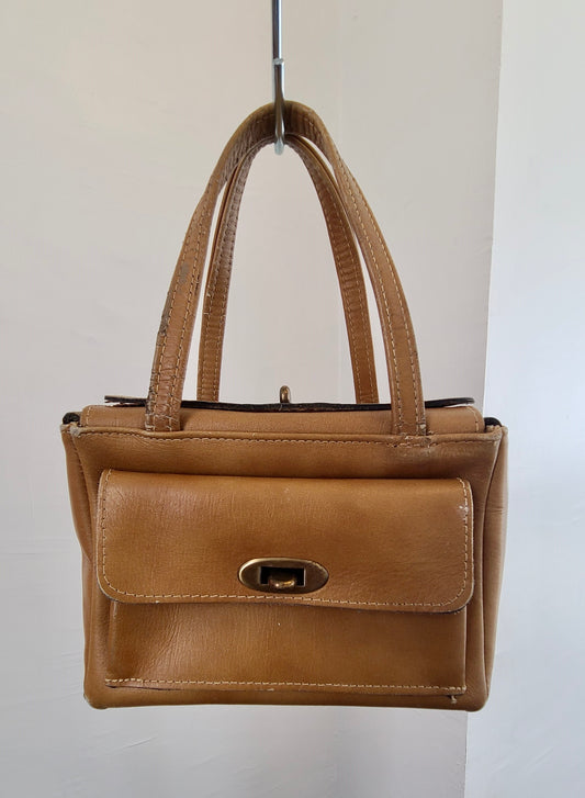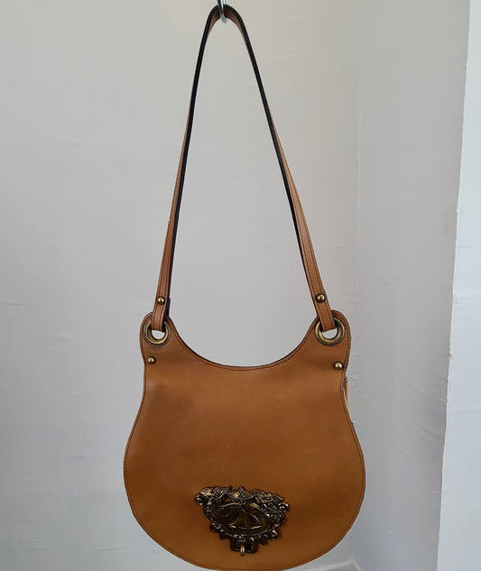Vintage 1960s Leather Bag With Antique Brass Horse