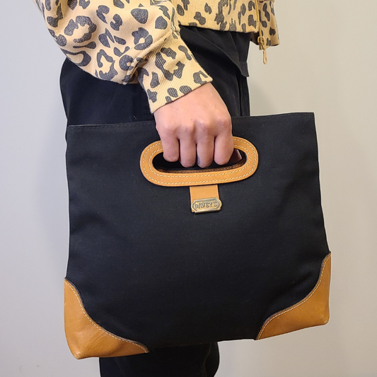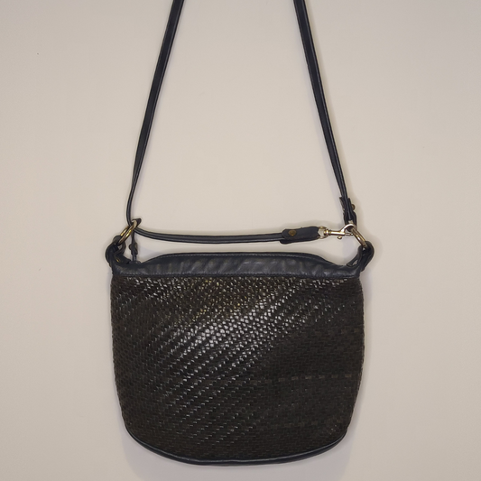 Vintage 1960s Navy and Brown Woven Leather Handbag