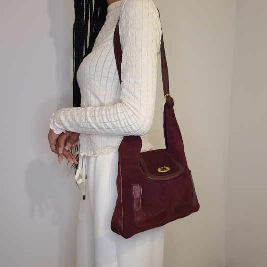 Vintage 1970s Burgundy Suede Shoulder Bag