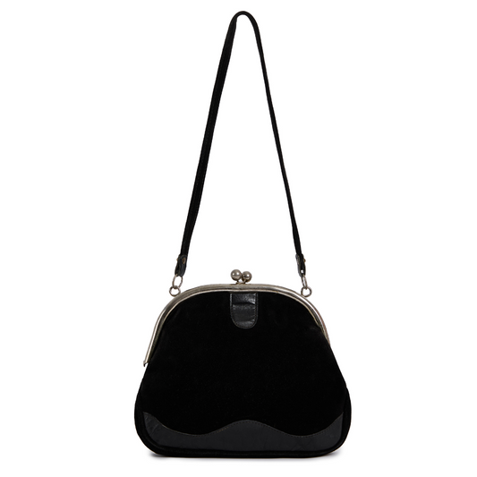 Vintage 1960s Oversized Suede Kiss Lock Frame Bag