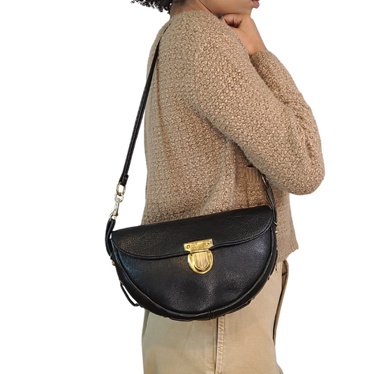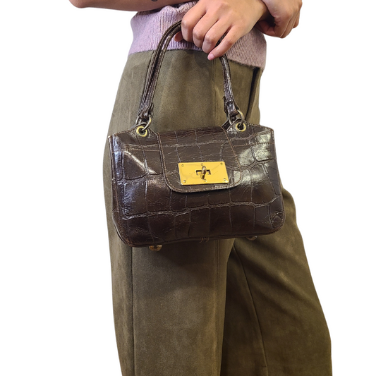 Vintage 1960s Brown Leather Mock Crocodile Embossed Bag