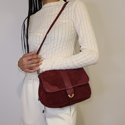 Vintage 1970s Oxblood Red Suede Shoulder Bag