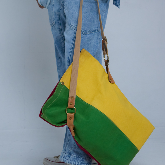 Vintage 1980s Color-Block Shoulder Bag Tote