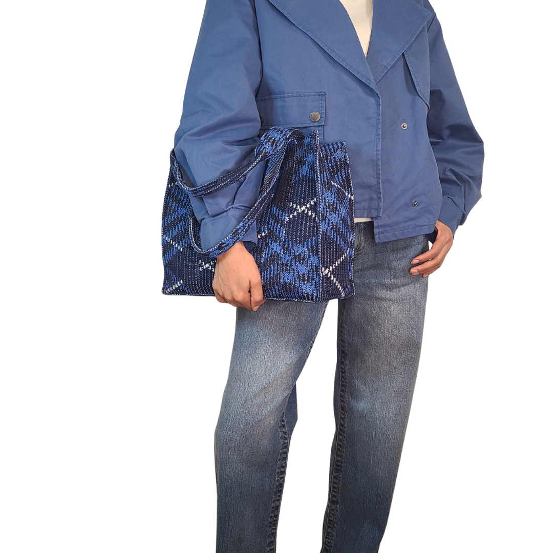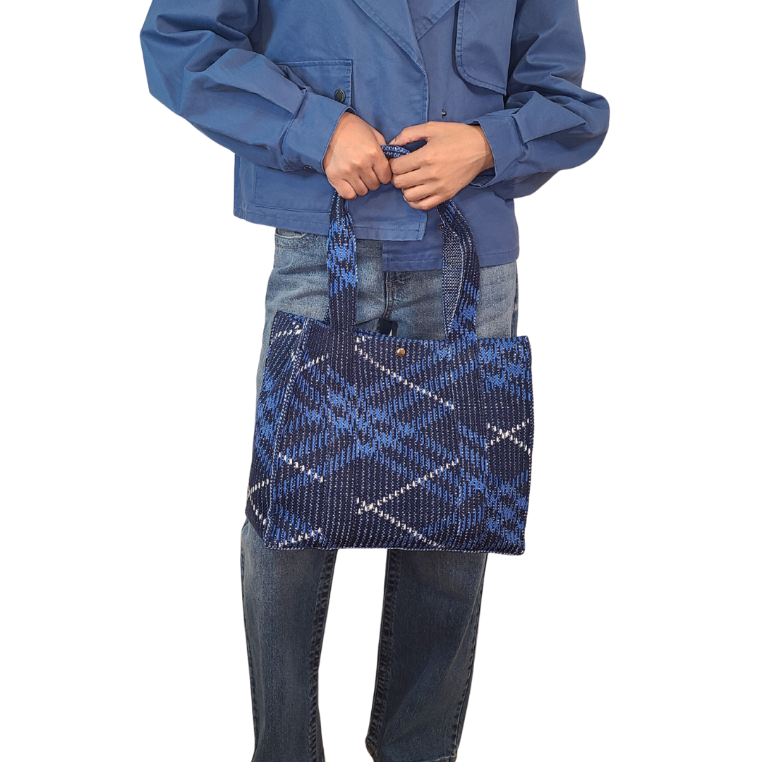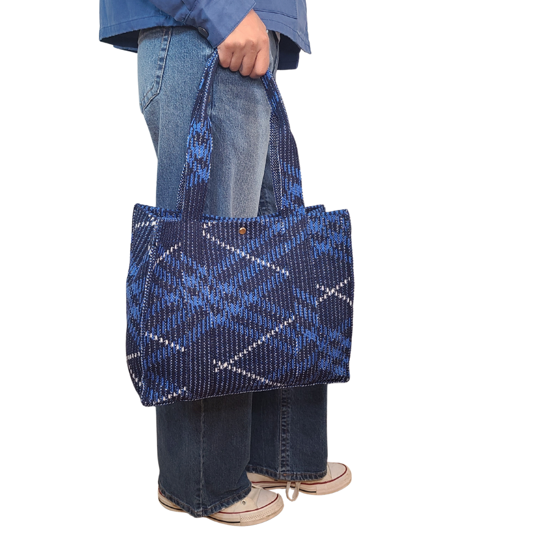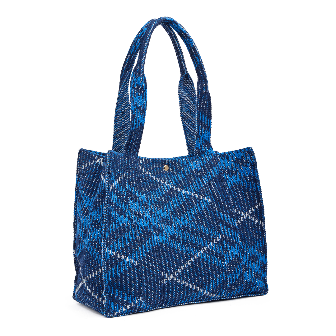 The Front Street Tote is a softly-structured bag with a vibrant plaid pattern. It's lightweight, 100% cotton, and features a magnetic snap closure and two shoulder straps. Each bag is made on a sweater knitting machine, hand-assembled and has a hand-sewn Davey's label inside. Hurry, they're in limited quantities.