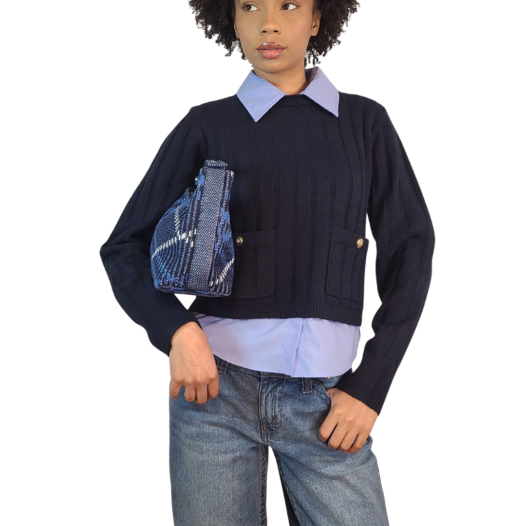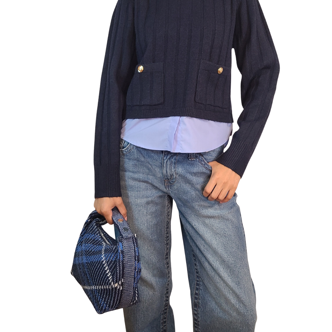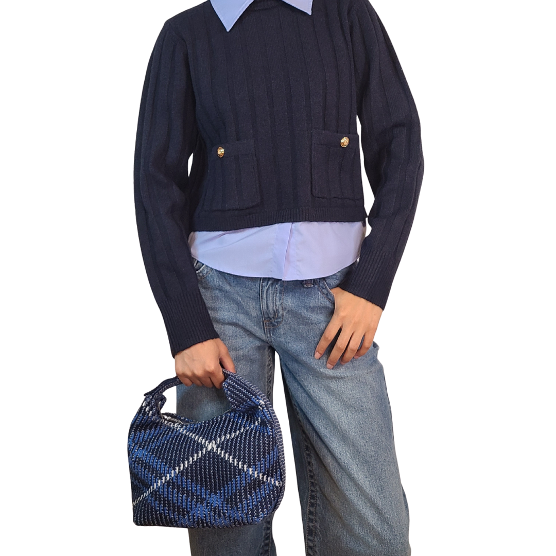Grafton Plaid Sweater Knit Bag - Classic Navy
