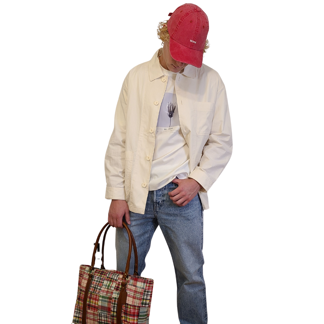 Madras fabric, known for its lightweight and colorful plaid patterns, is traditionally made in and around Chennai, India, formerly known as Madras. This region is the historical origin of the fabric and remains a key production area for authentic Madras. The madras plaids for this bag, have been cut, and handsewn into squares. Thats why there are irregularites in shape and size. Each bag is unique and individual. Made in India.