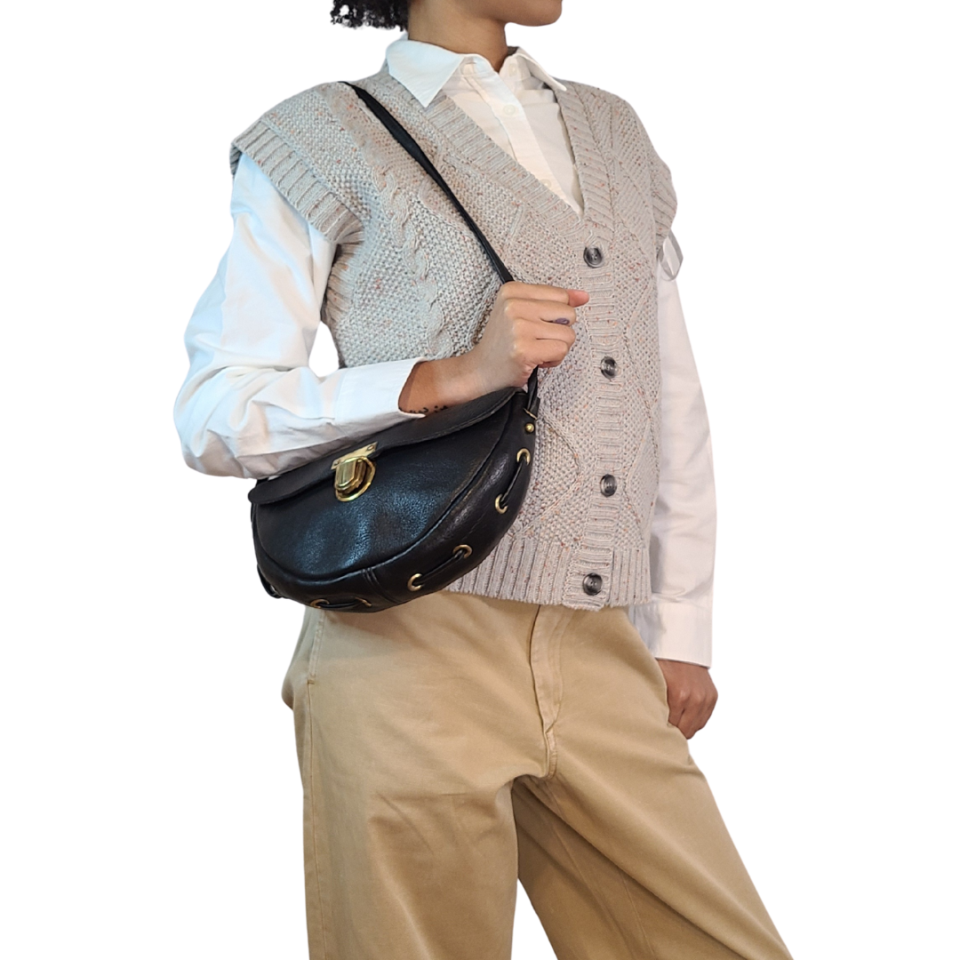 Pre-loved vintage Davey's 1960s Black Leather Handbag. Made in the USA.